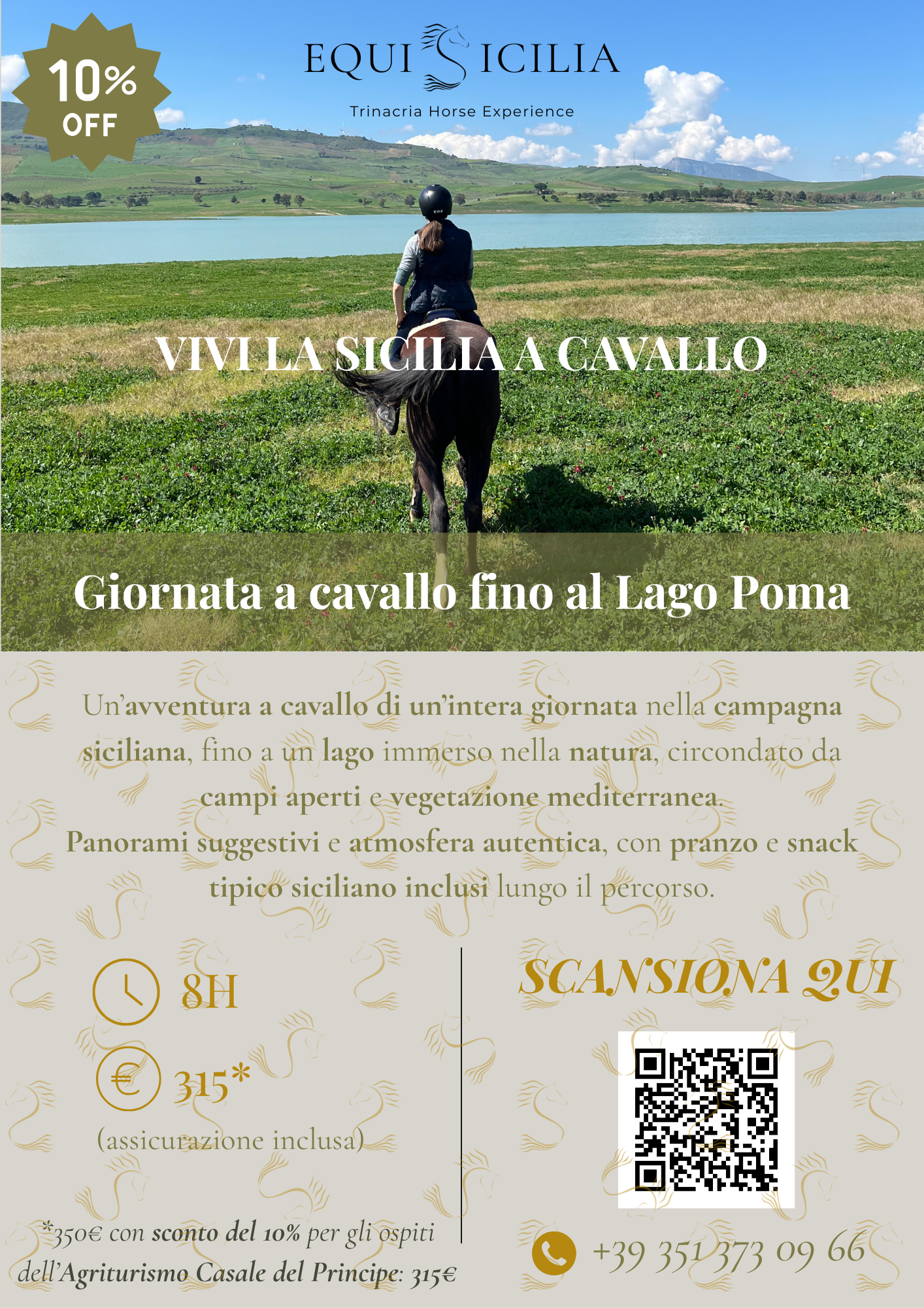 Un’escursione di 8 ore nella campagna siciliana, fino alle rive del suggestivo Lago Poma, tra campi aperti, vegetazione mediterranea e viste mozzafiato.